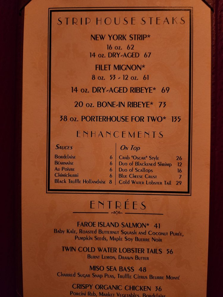 Nestled in the heart of Las Vegas, Strip House Steakhouse offers a refined dining experience characterized by a romantic ambiance and upscale decor. The menu features an exquisite selection of steaks, with highlights including the 16 oz New York Strip and the dry-aged rib eye, both renowned for their impeccable flavor and char. Guests rave about the appetizers, such as the Jumbo Shrimp Cocktail and the delightful Tuna Tartare. Vegan and keto options ensure inclusivity for diverse dietary preferences.